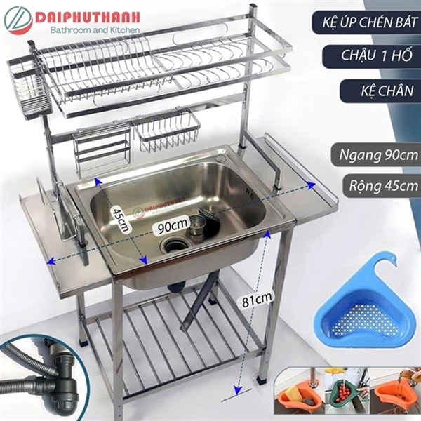 Chậu chén có chân CK6045R 1 hộc- kệ 1 tầng (I)