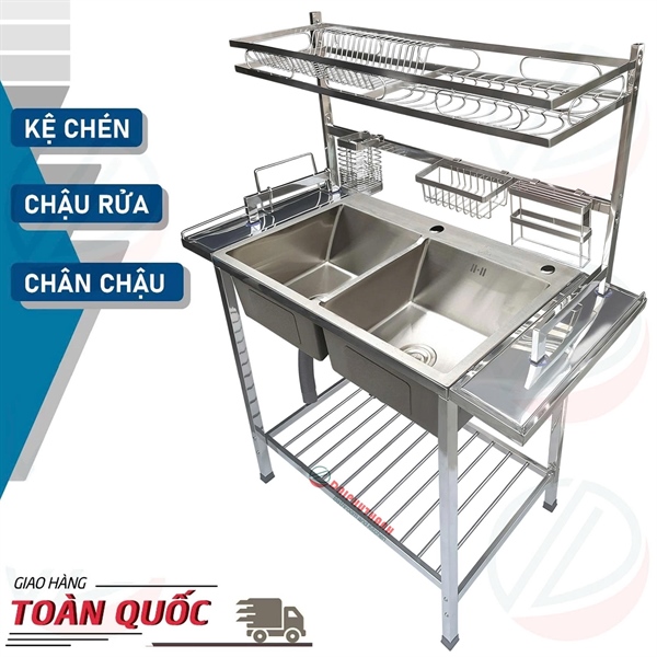 Chậu chén có chân Kazta 2 hộc- kệ 1 tầng(I)