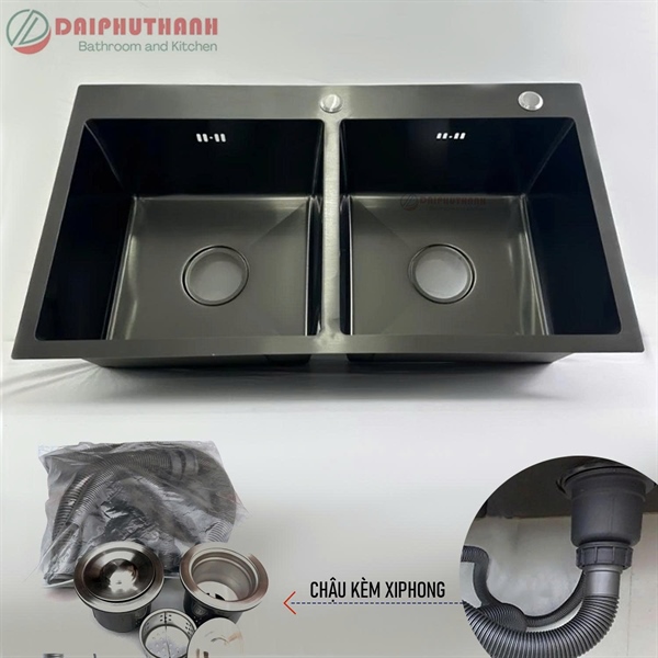 Chậu chén Kazta C8245D 2 hộc đen (I)