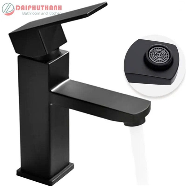 Vòi lavabo nóng lạnh thân vuông đen (I)