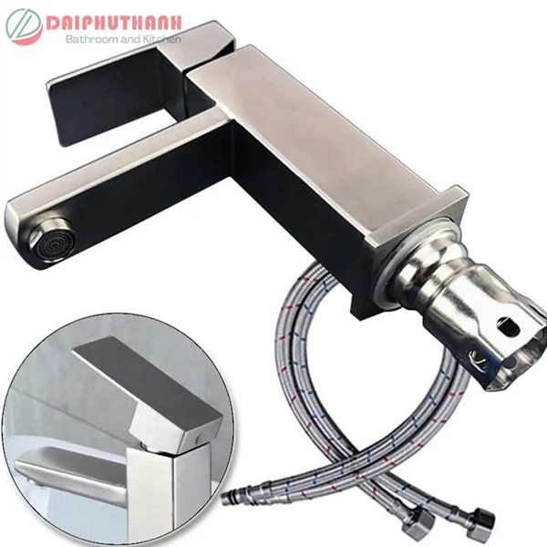 Vòi lavabo nóng lạnh vuông inox mờ (I)