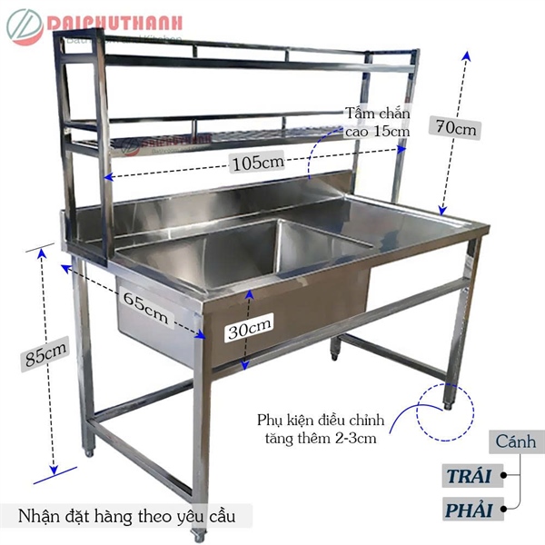 - Loại: Chậu liền chân kệ 2 tầng (chậu 1 hộc rửa sâu 30cm + 1 bàn xoay hướng phải)