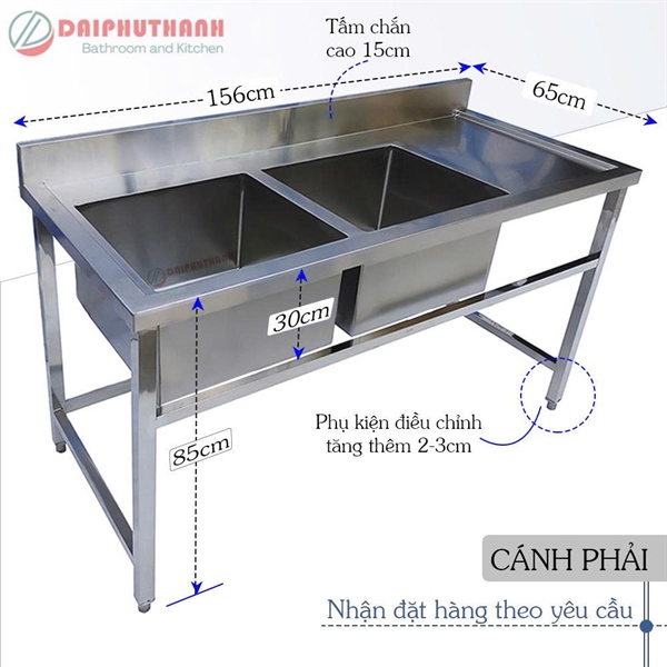 Chậu chén inox công nghiệp 2 hộc 1 bàn (I)
