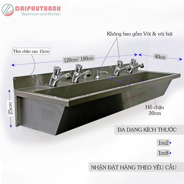 Chậu rửa tay inox công nghiệp treo tường (I)