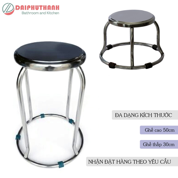 Ghế đôn inox mặt tròn có vòng kiềng (I)